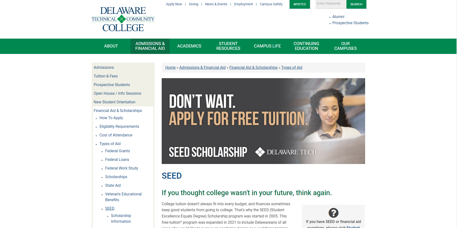 Seeds Scholarship Link : SEED | Delaware Technical Community College (dtcc.edu)
